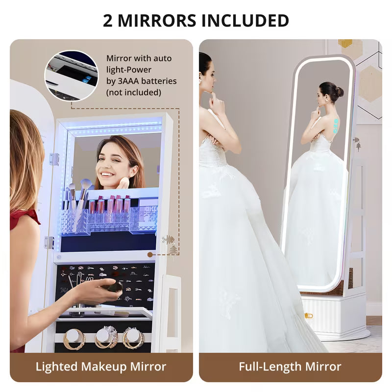 vintage inspired 360 swivel jewelry   cabinet with lights lockable full length organizer with storage drawer for bedroom decor Product details 1
