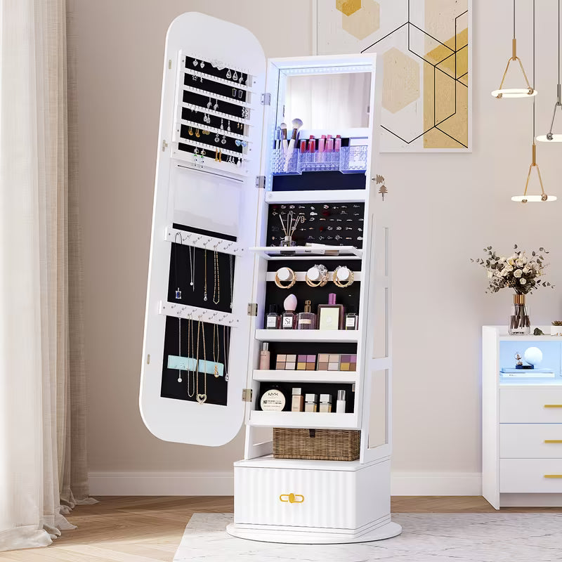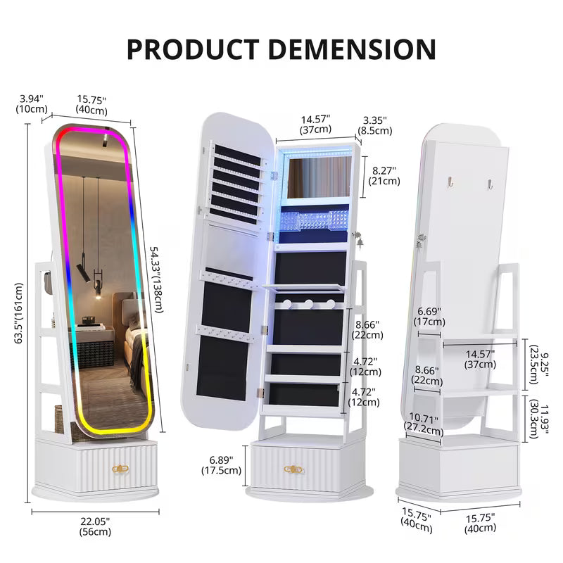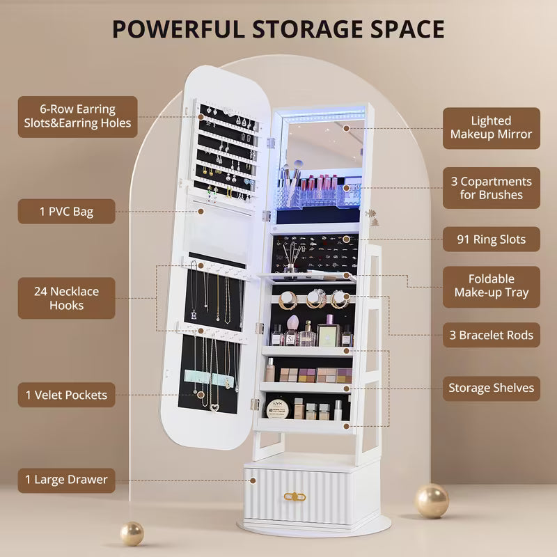 vintage inspired 360 swivel jewelry   cabinet with lights lockable full length organizer with storage drawer for bedroom decor Product details 5