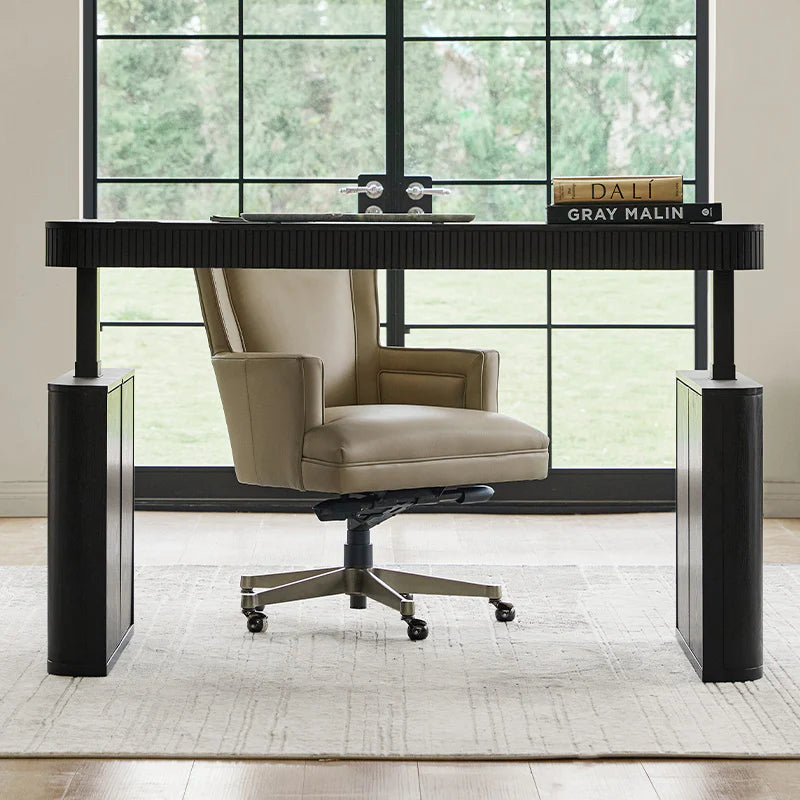 Aggiorna il tuo spazio di lavoro con questa scrivania elettrica regolabile in altezza in stile americano, progettata per funzionalità ed eleganza. Il meccanismo elettrico di sollevamento della scrivania regolabile in altezza consente regolazioni fluide, permettendoti di passare senza sforzo dalla posizione seduta a quella in piedi per una routine di lavoro più sana. Con un elegante dettaglio a listelli, questa scrivania regolabile aggiunge un tocco sofisticato all'arredamento dell'ufficio. Le opzioni di stoccaggio sono abbondanti, con una mensola interna su entrambi i lati per riporre oggetti nascosti, completa di ante a battente con apertura a pressione per un facile accesso. Sotto il piano del tavolo, tre ampi cassetti offrono guide morbide e autoinciudibili, garantendo un utilizzo silenzioso e fluido. Mantieni il tuo spazio di lavoro organizzato con la gestione dei cavi integrata, progettata per nascondere in modo ordinato i cavi e mantenere una scrivania pulita e sistemata. Questa scrivania elettrica regolabile fonde estetica elegante con funzionalità moderna, rendendola la scelta perfetta per un ufficio domestico o un ambiente di lavoro contemporaneo.